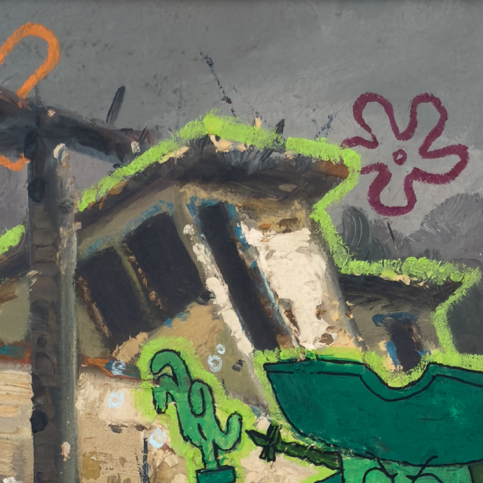 Essa obra nasceu a partir de uma pintura de barco encontrada em brechó. Por ser um assunto ligado ao oceano trouxe personagens do Bob Esponja para a cena, e aproveitando os barcos, o Holandês Voador também marcou presença.